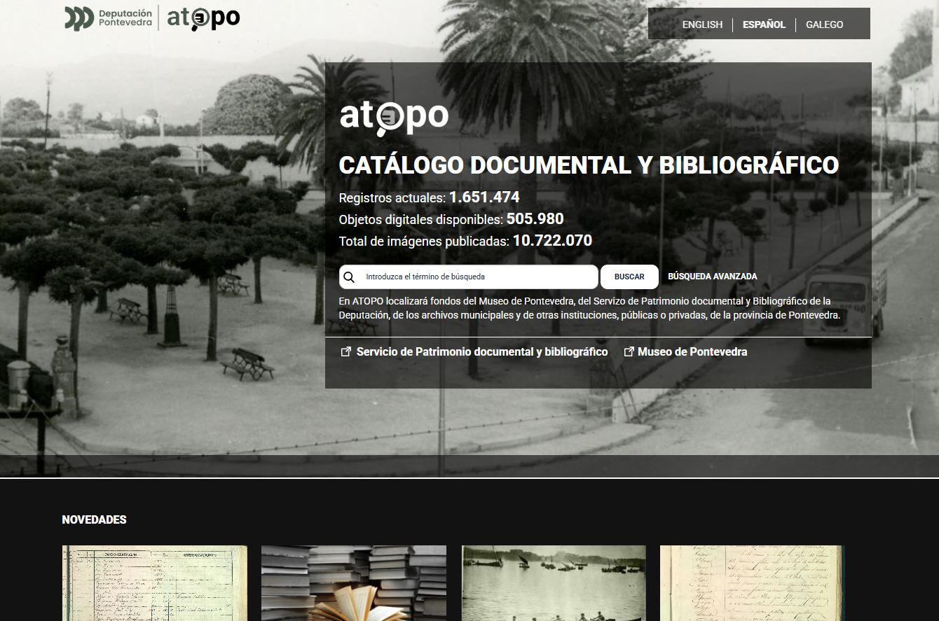 En 2025 o portal ATOPO, repositorio dixital dos fondos bibliográficos e documentais da Deputación de Pontevedra, experimentou un crecemento significativo no seu coñecemento e uso, exemplificado nas seguintes cifras proporcionadas polo Servizo de Novas Tecnoloxías da institución provincial.